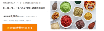当サイトのイチオシはSARAスクール「スーパーフード資格取得講座」。